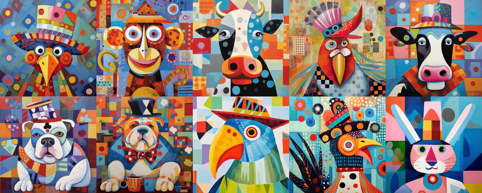 The party is about to begin! Come join us. In a house of mirrors with a colorful ball floor, the animals have fun creating unique, amusing, and magical illustrations.