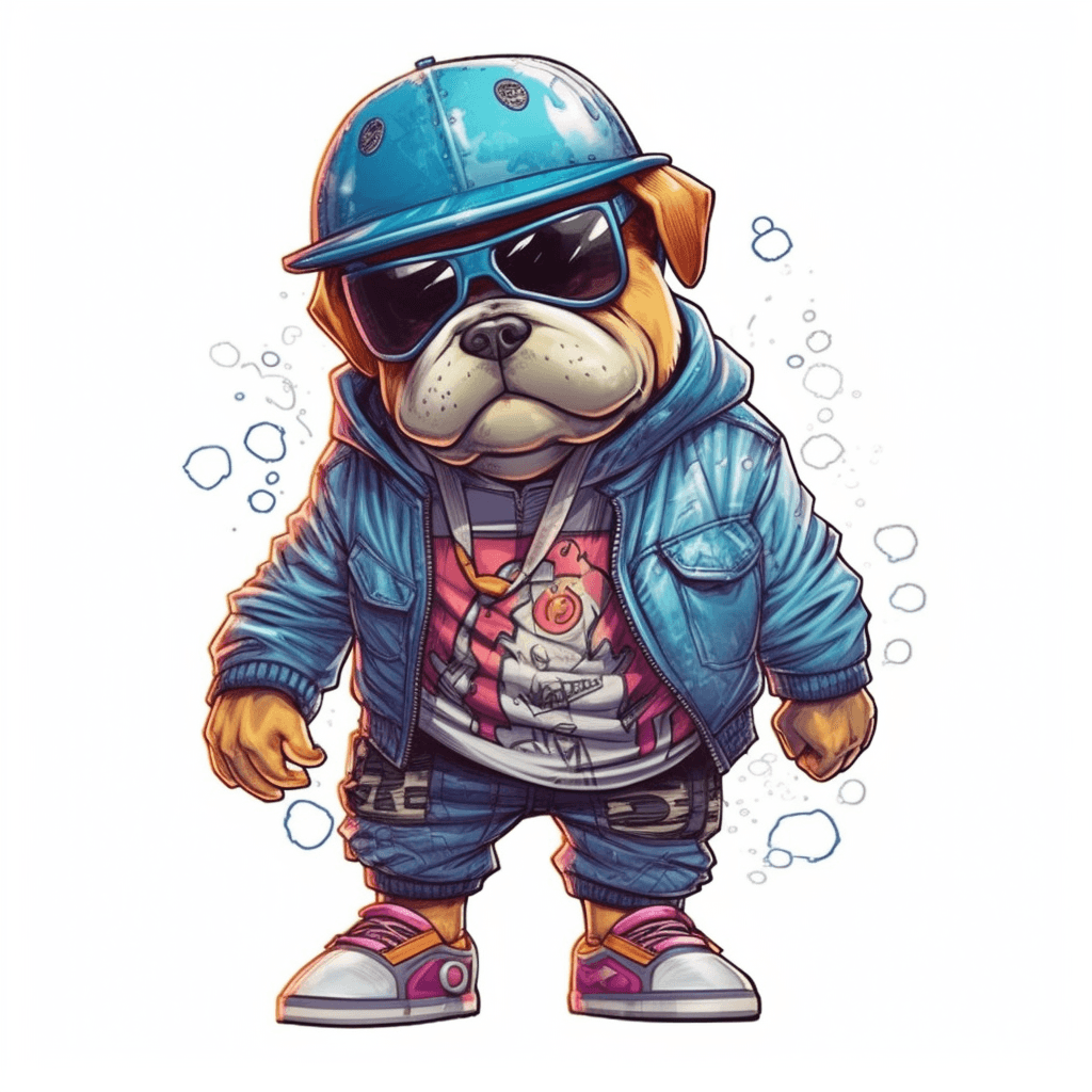 In the vibrant city of Skatetopia, there's a skateboarding bulldog named Bumpy. Known for his playful and unique style, Bumpy rocks oversized sunglasses, a hat adorned with graffiti-inspired patterns, and customized sneakers in vibrant colors.